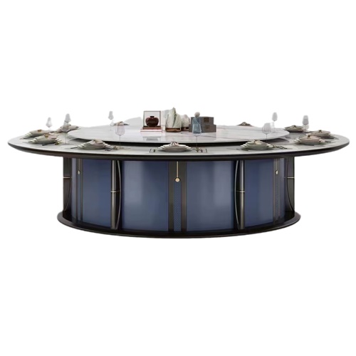 酒店会所时尚轻奢大理石电动餐桌大圆桌图