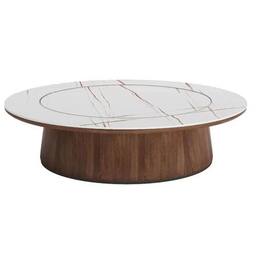 是由天然原料经过特殊工艺,借助万吨以上压机压制(超过15000吨),结合先进的生产技术,经过1200℃以上高温烧制而成,能够经得起切割、钻孔、打磨等加工过程的超大规格新型瓷质材料。餐桌面或者是转盘面采用岩板设计,具有轻、耐磨、无渗透等优点。