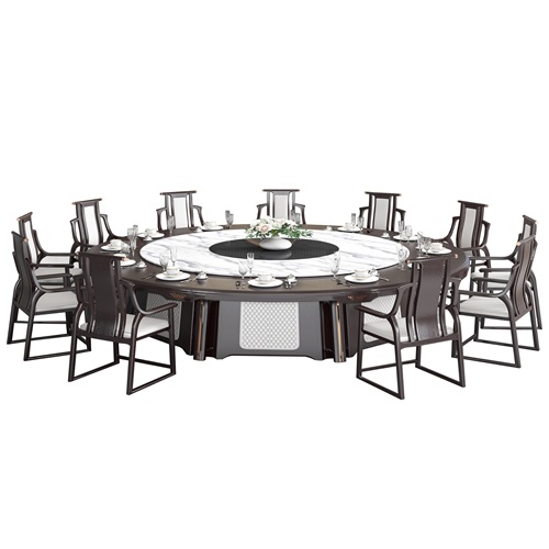 酒楼新中式岩板16人自动旋转电动桌图