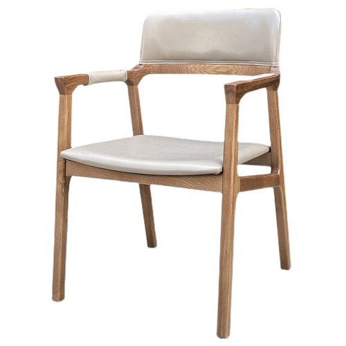 餐厅家具厂家为您展示咖啡厅饮品店白蜡木实木皮革软包餐椅扶手